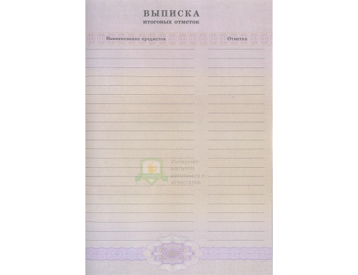 - к документу прилагается выписка с перечнем предметов и оценок;