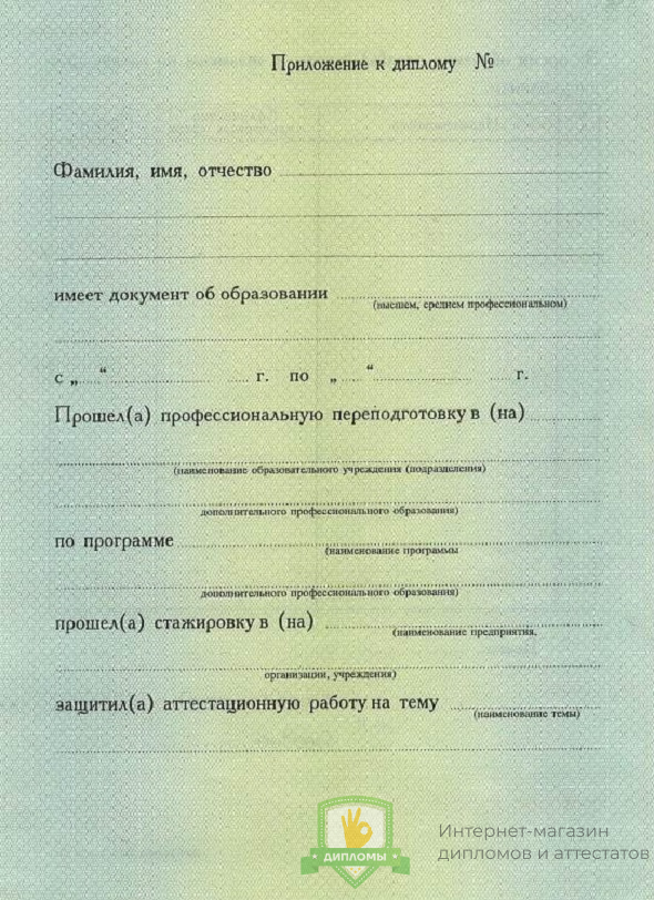 Купить диплом о профессиональной переподготовке 1996 - 2012 год