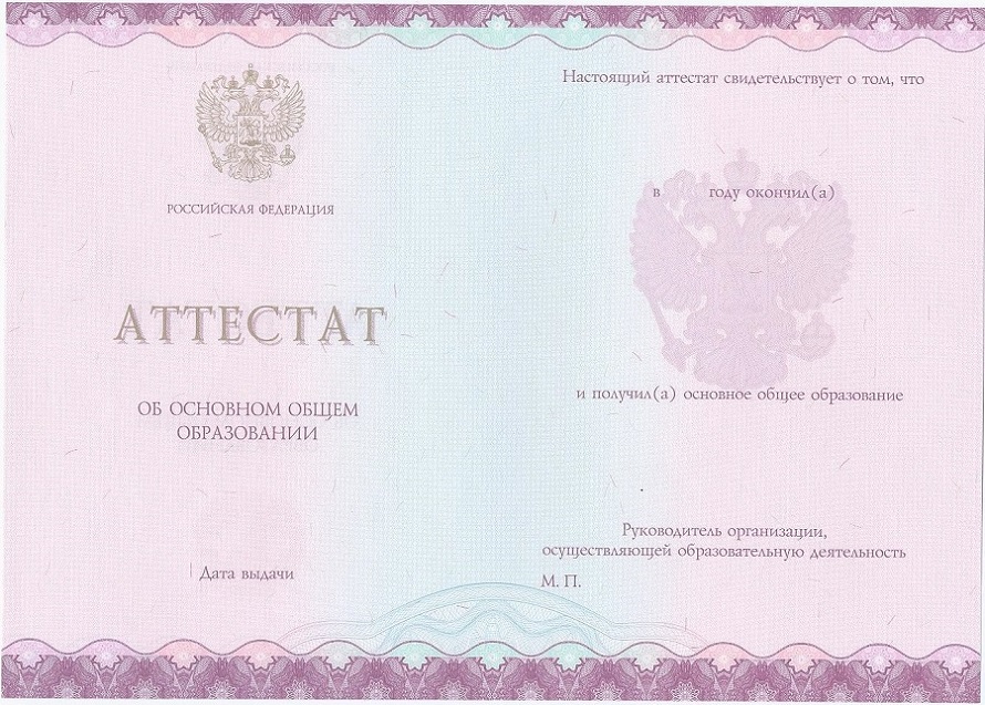 Образцы аттестатов за 8 - 9 класс: