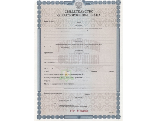 Купить свидетельство о расторжении брака 1998 - 2018 год